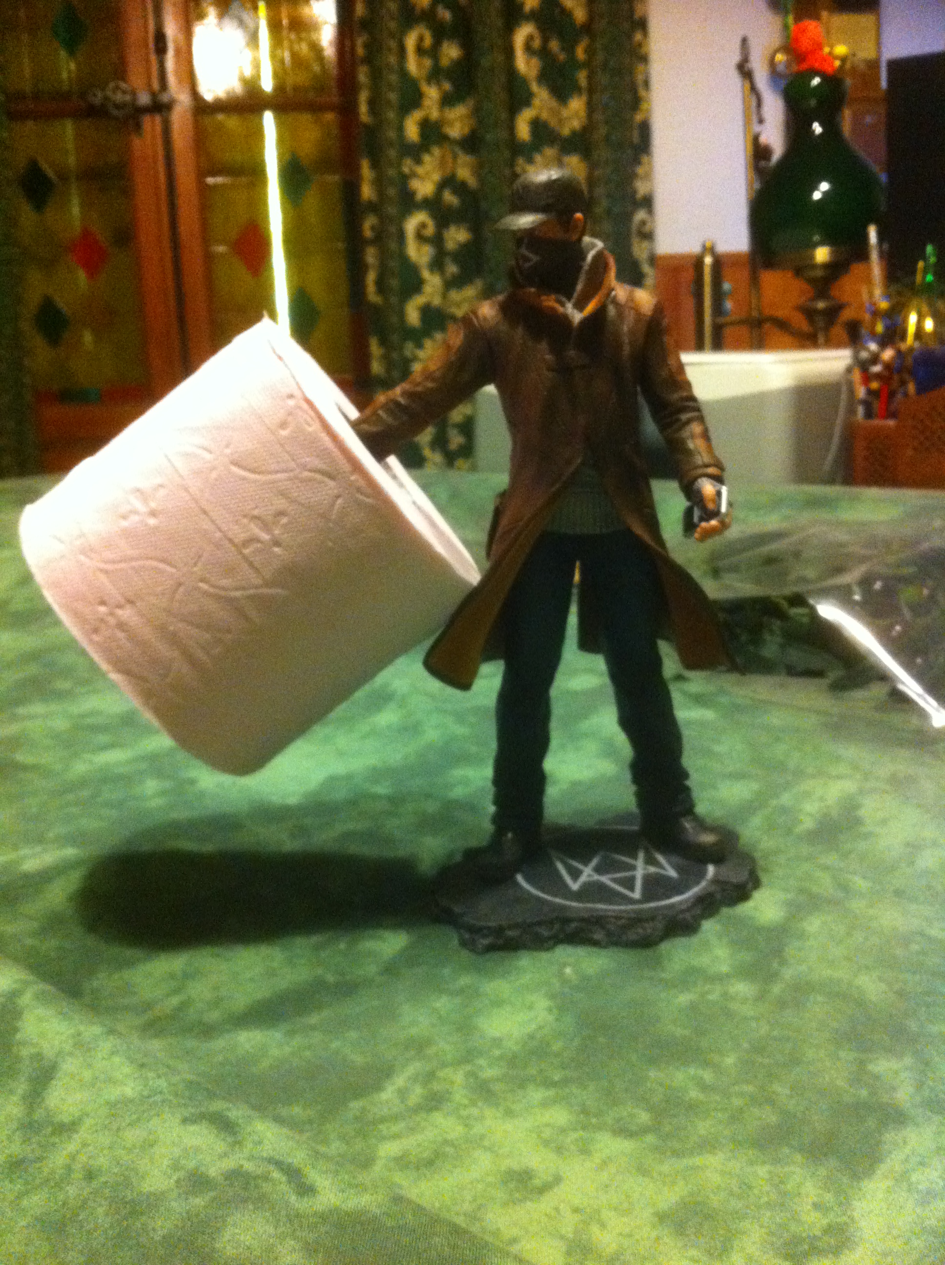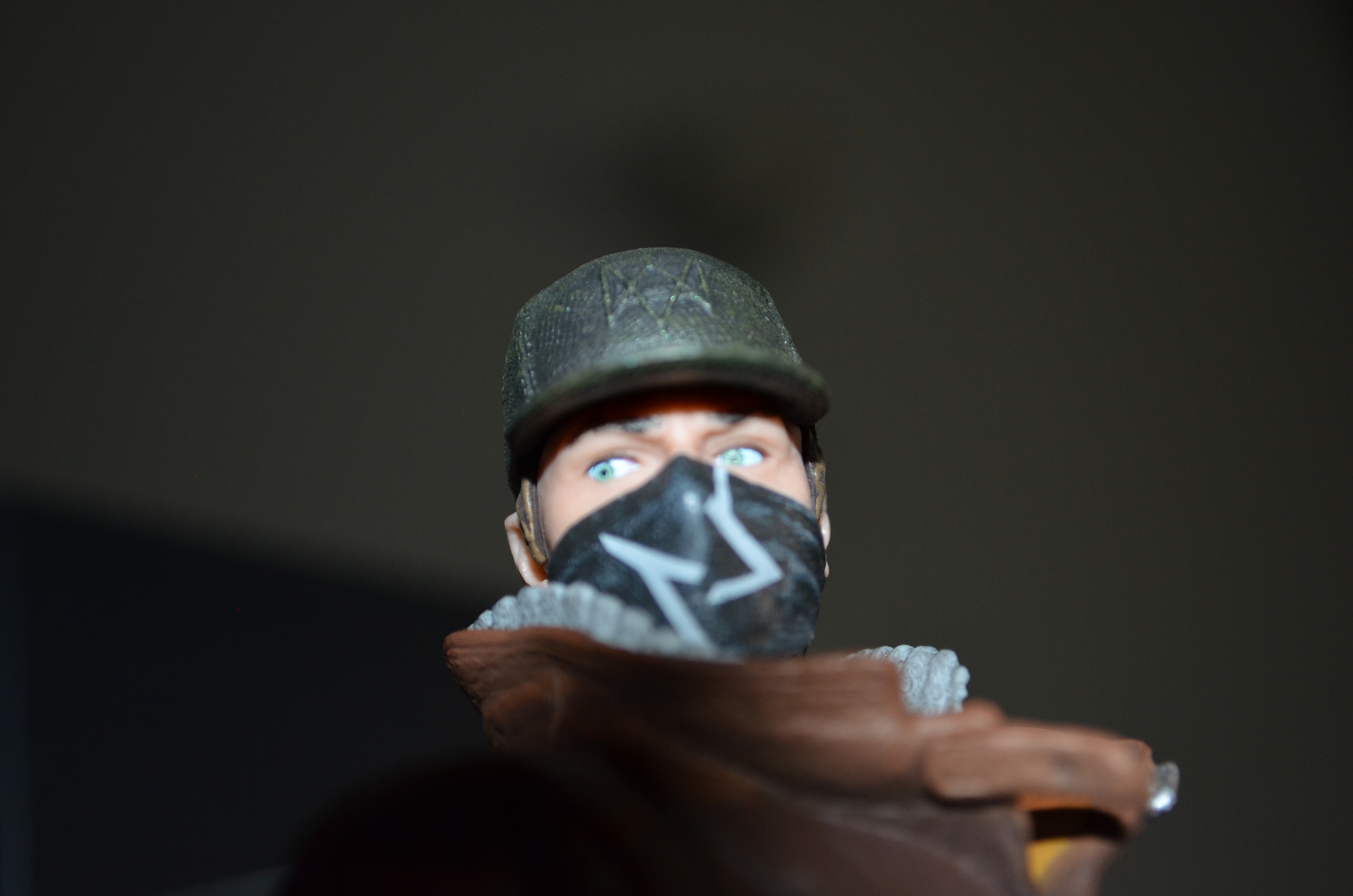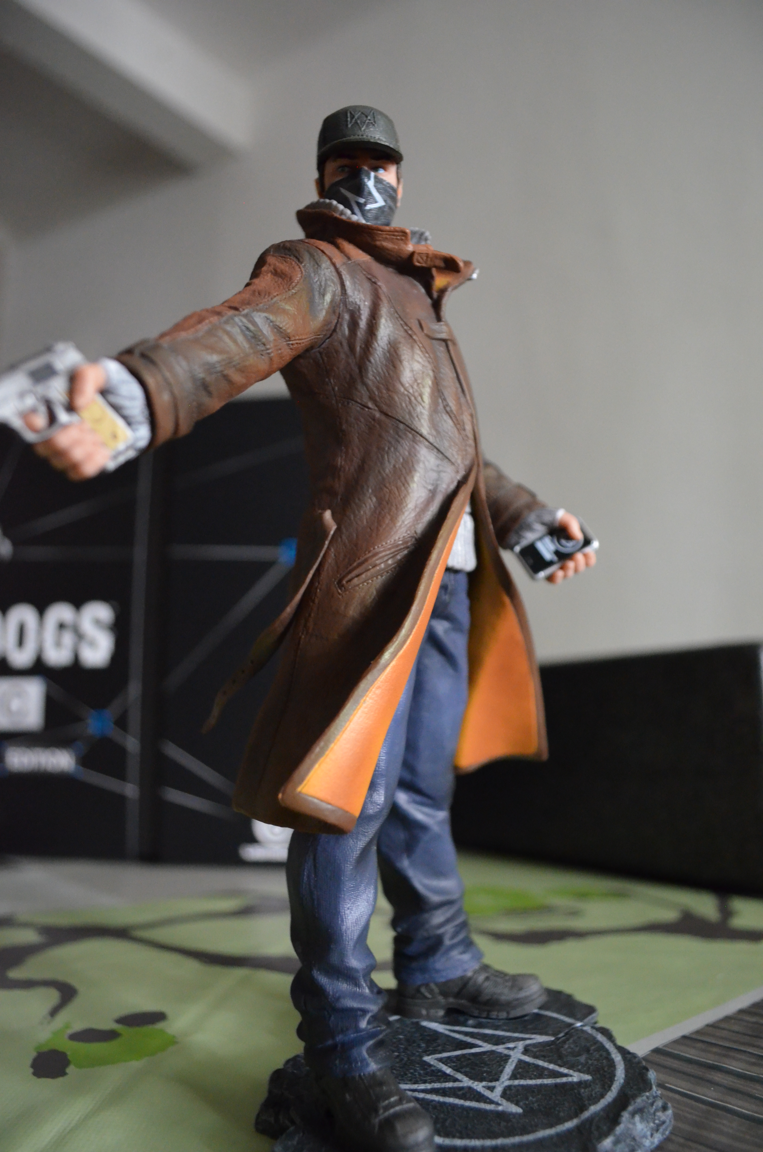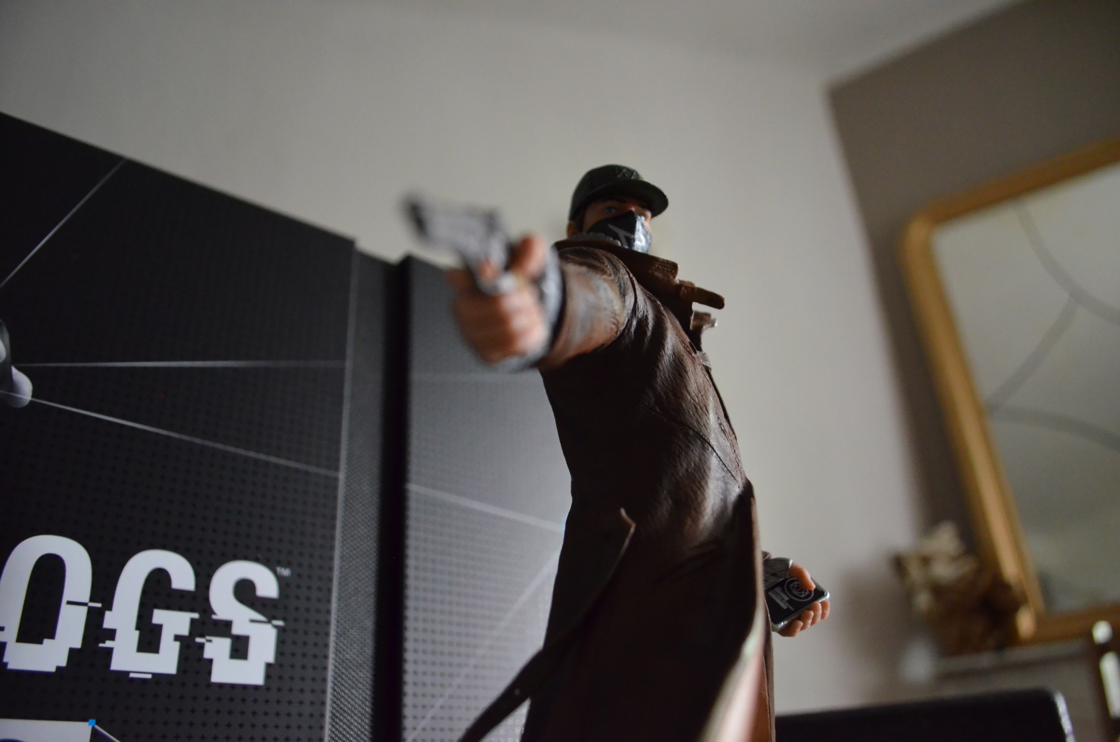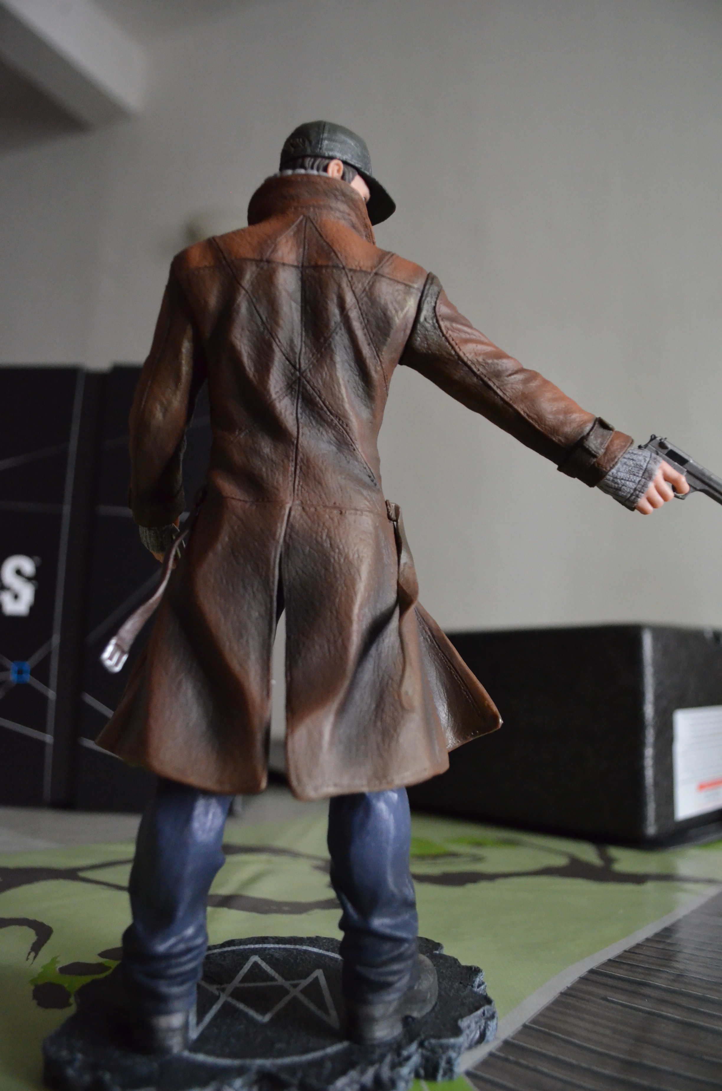 Nan je déconne, je veux dire la fantastique statuette d’Aiden Pierce complètement trop badass, garantie sans strabisme, et avec des jolies finitions, qui rendront vachement bien une fois dans votre vitrine/étagère/télé/chiotte, oui oui j’ai bien dit chiotte !