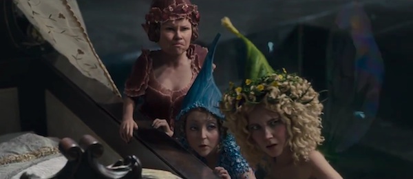 Ah tiens, regardez les trois petites fées gardiennes d’Aurore en version film. Oui celle du haut est bien l’abominable Dolores Ombrage de Harry Potter, et c’est plutôt amusant de la voir dans un tel rôle.