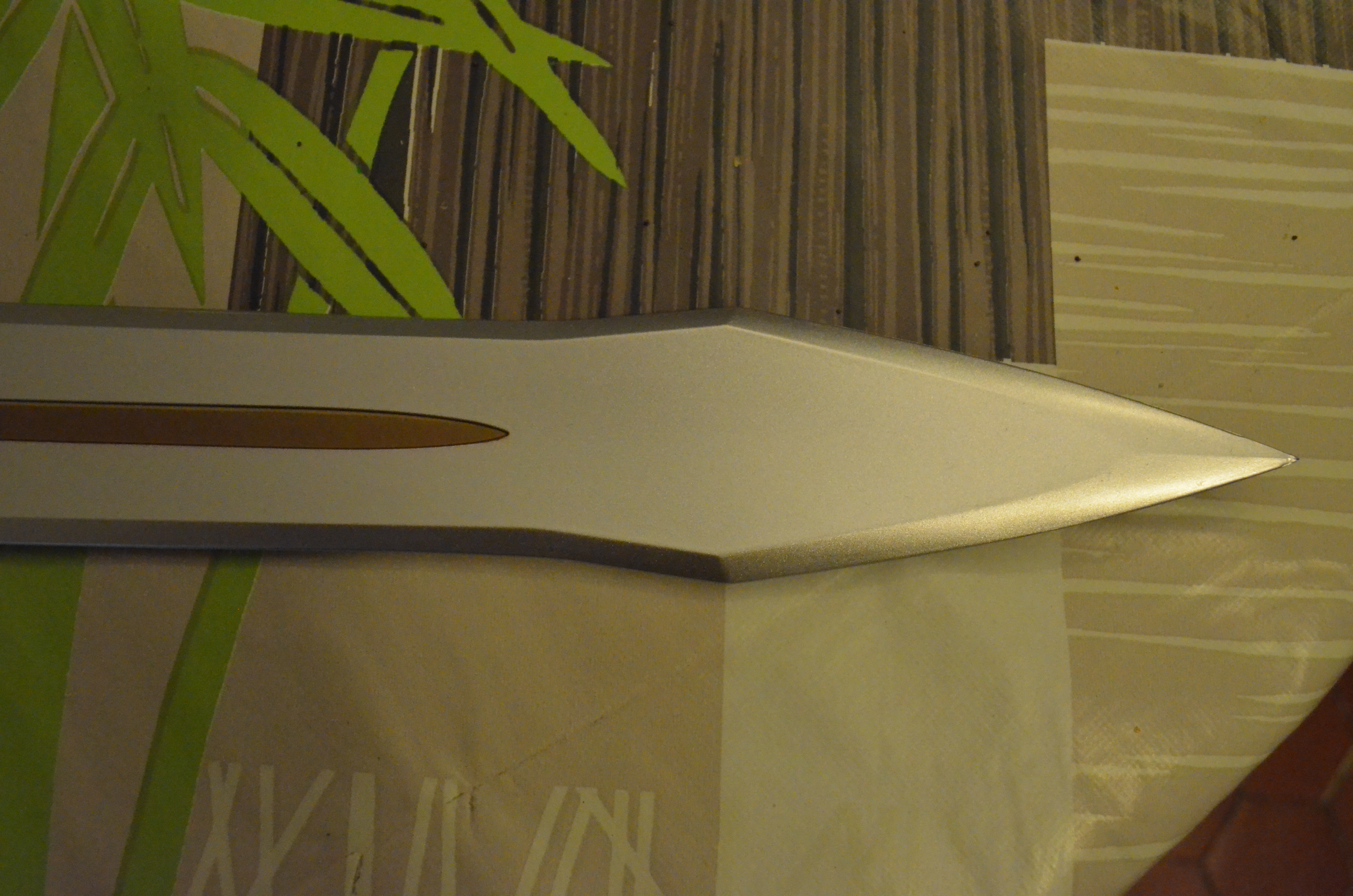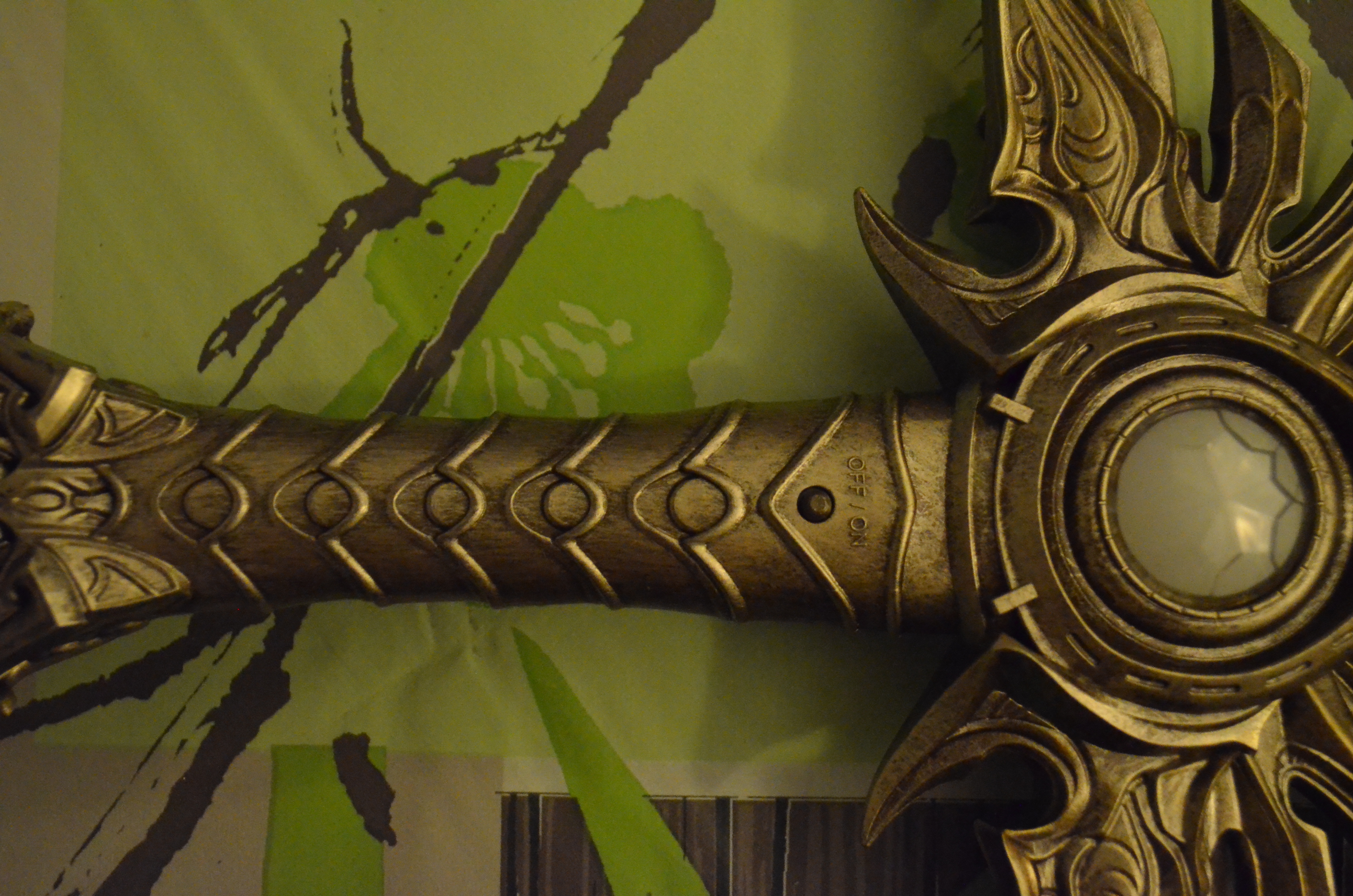 Je ne vous avais pas menti, elle a franchement de la gueule pour une épée en plastique, puisqu’elle donne quand même l’impression d’être en métal. Comble du comble, comme la vraie, elle rayonne de puissance, ouai! ouai!!!