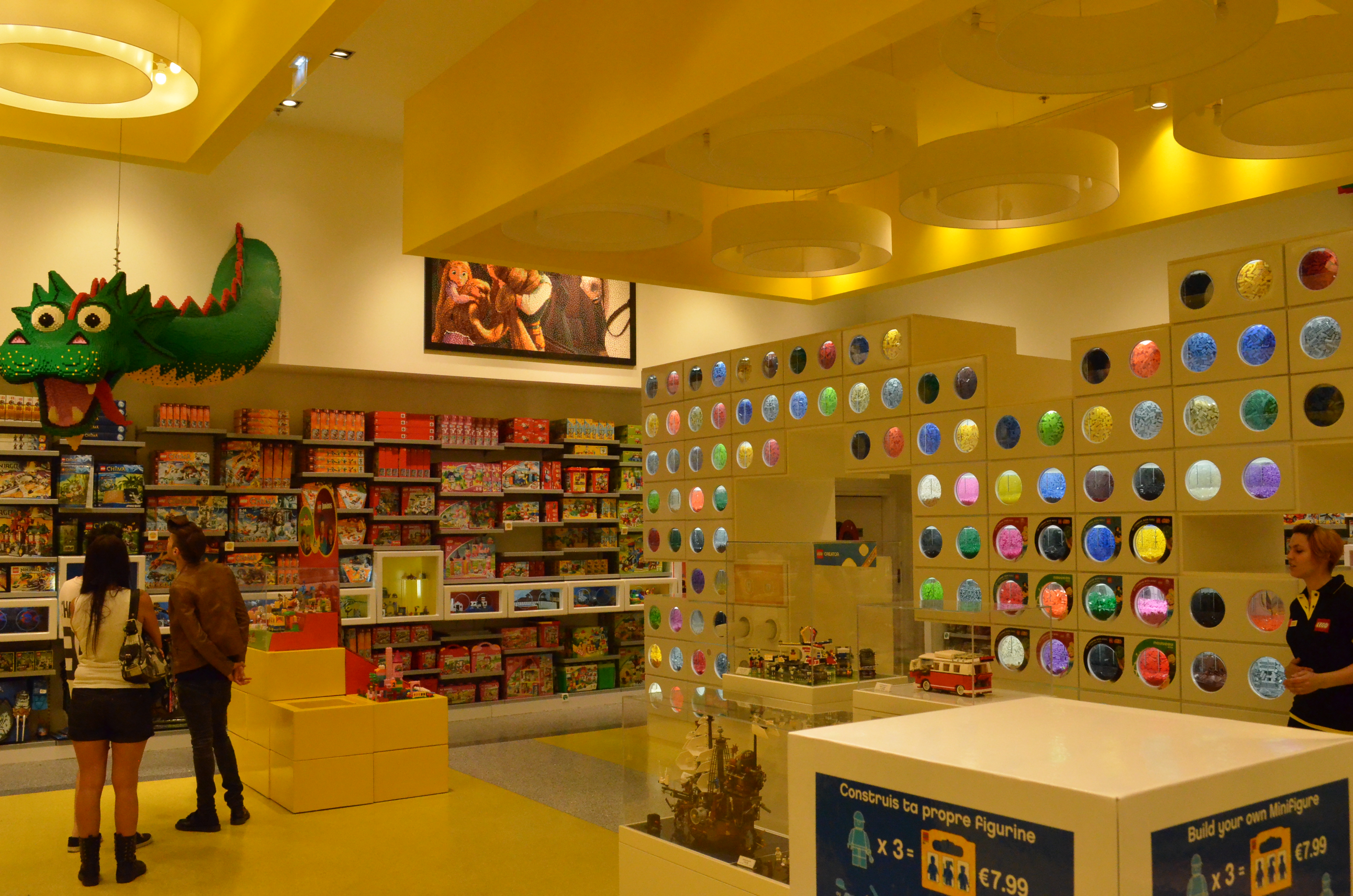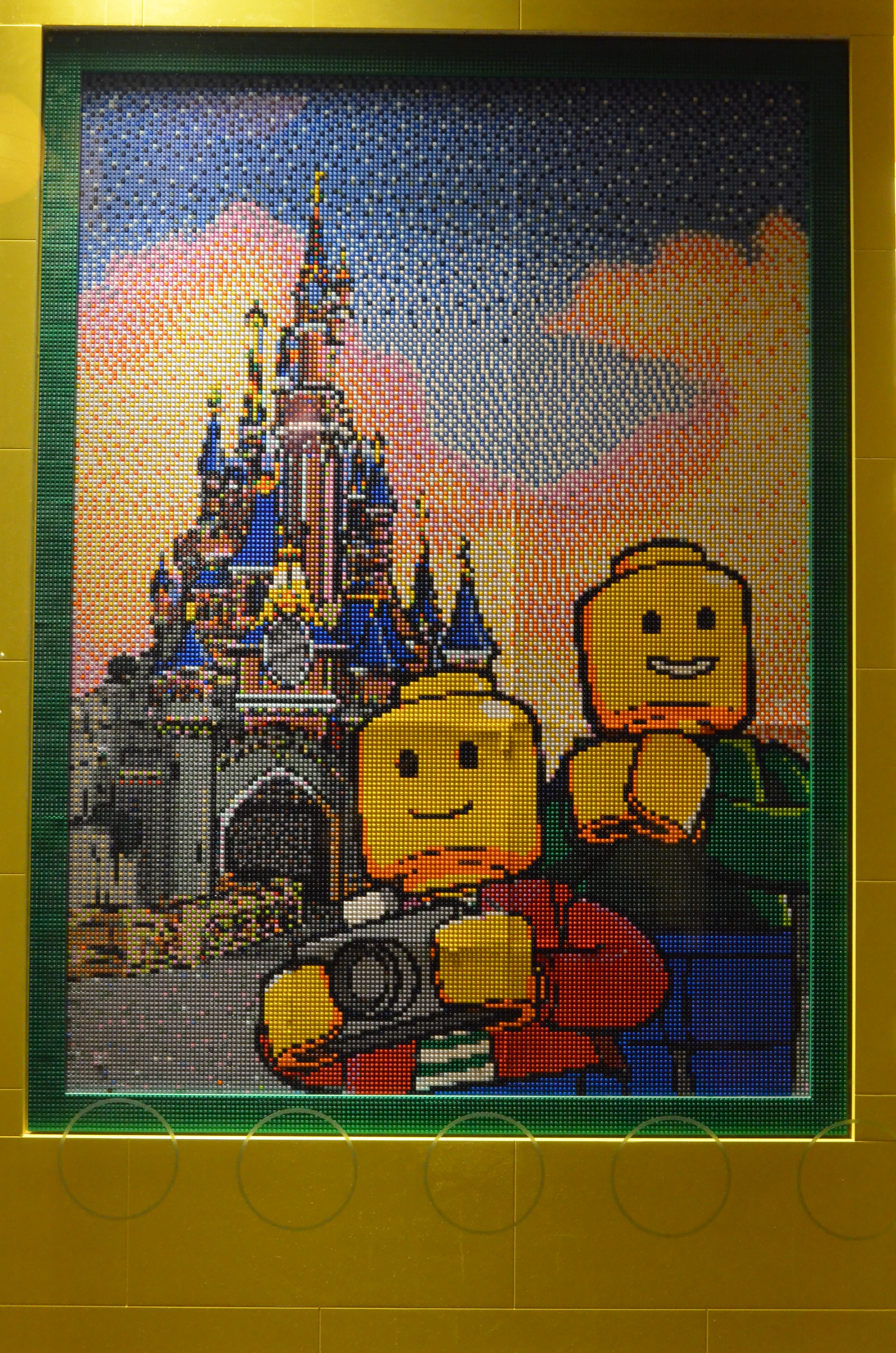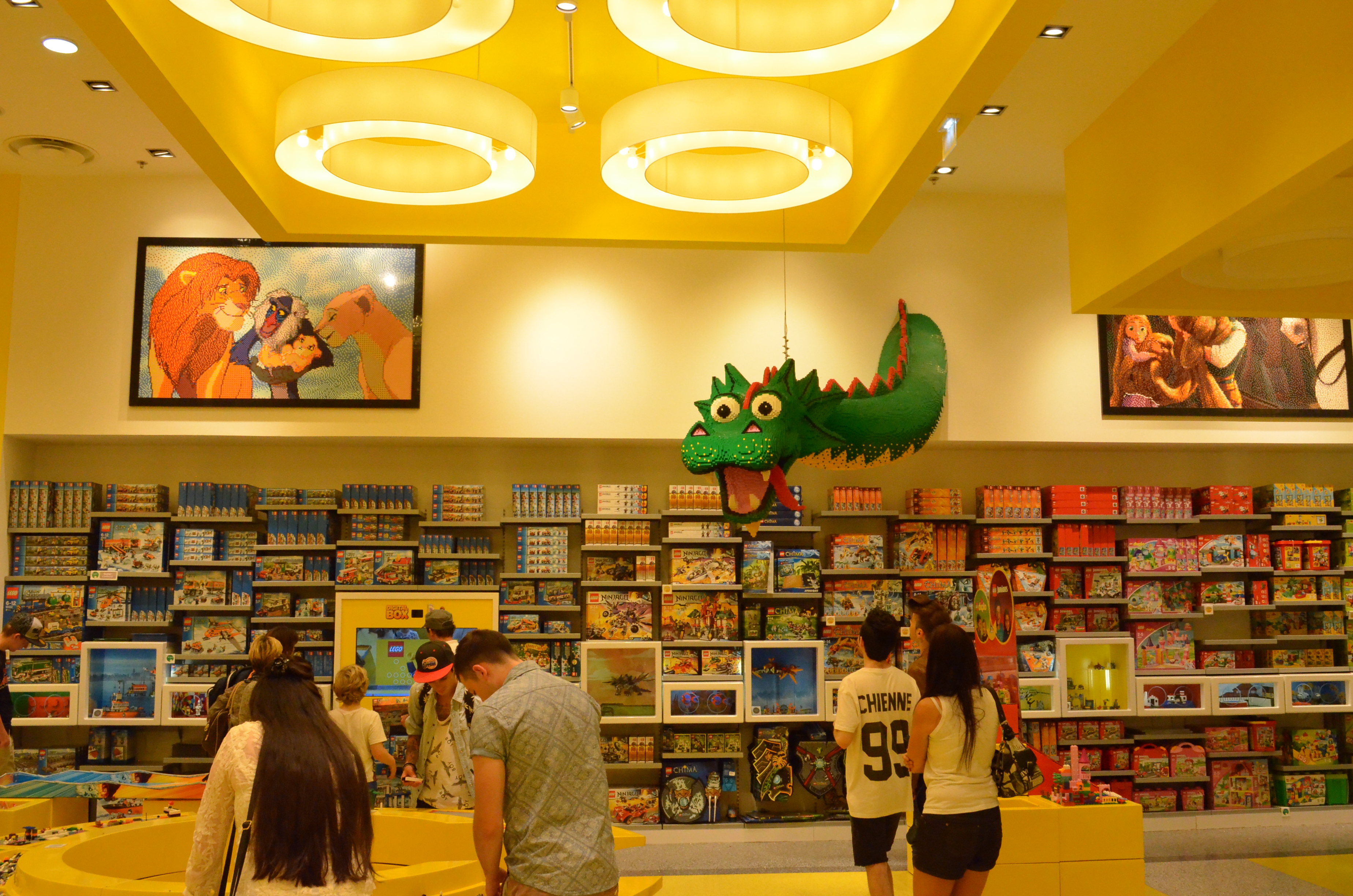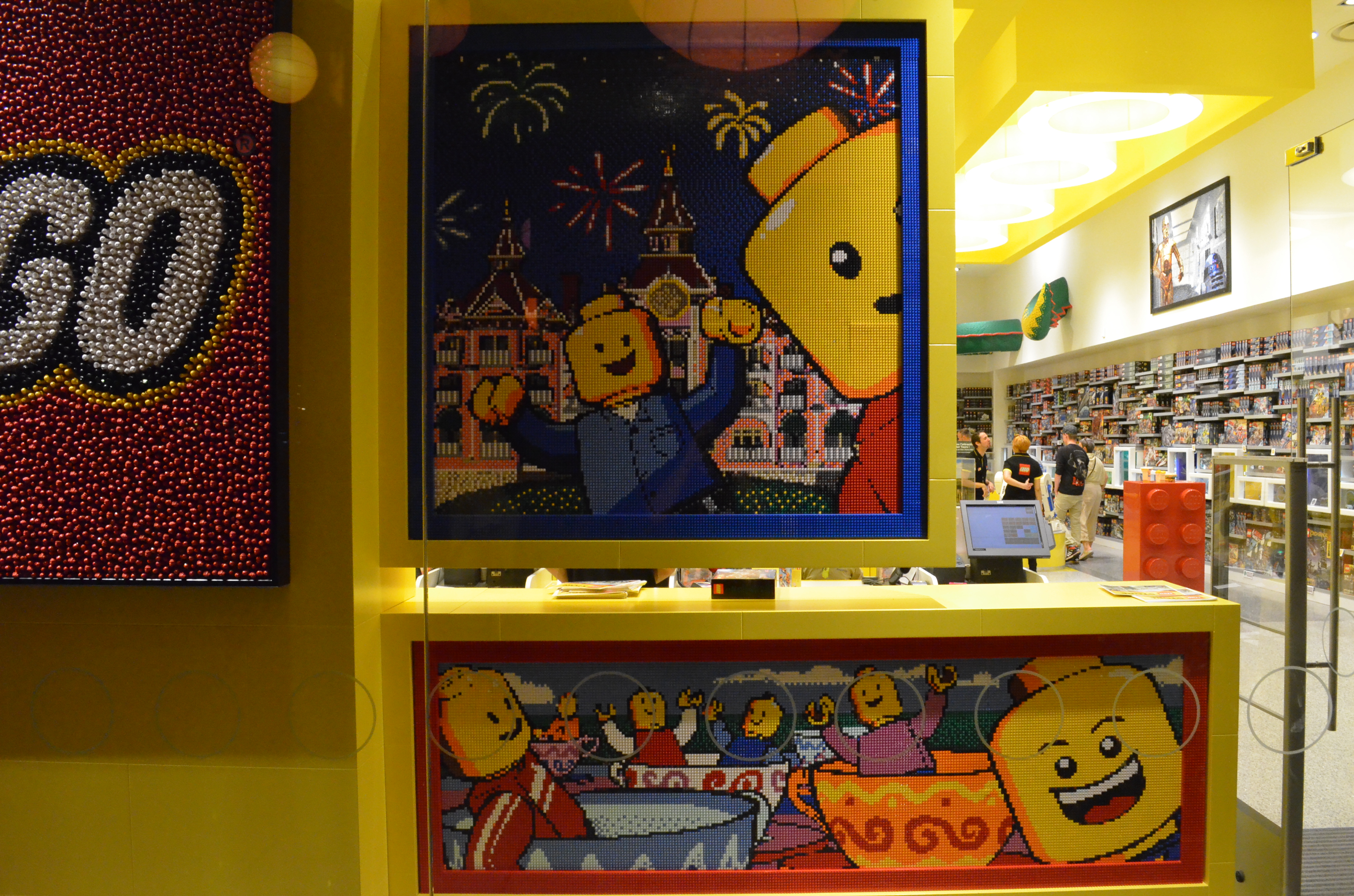 Quand on rentre on est cerné par des milliers de briques de couleurs dans tous les sens. De nombreux tableaux et personnages grandeurs natures aux couleurs de Disney ont été disposés dans le magasin histoire de bien mettre dans l’ambiance.