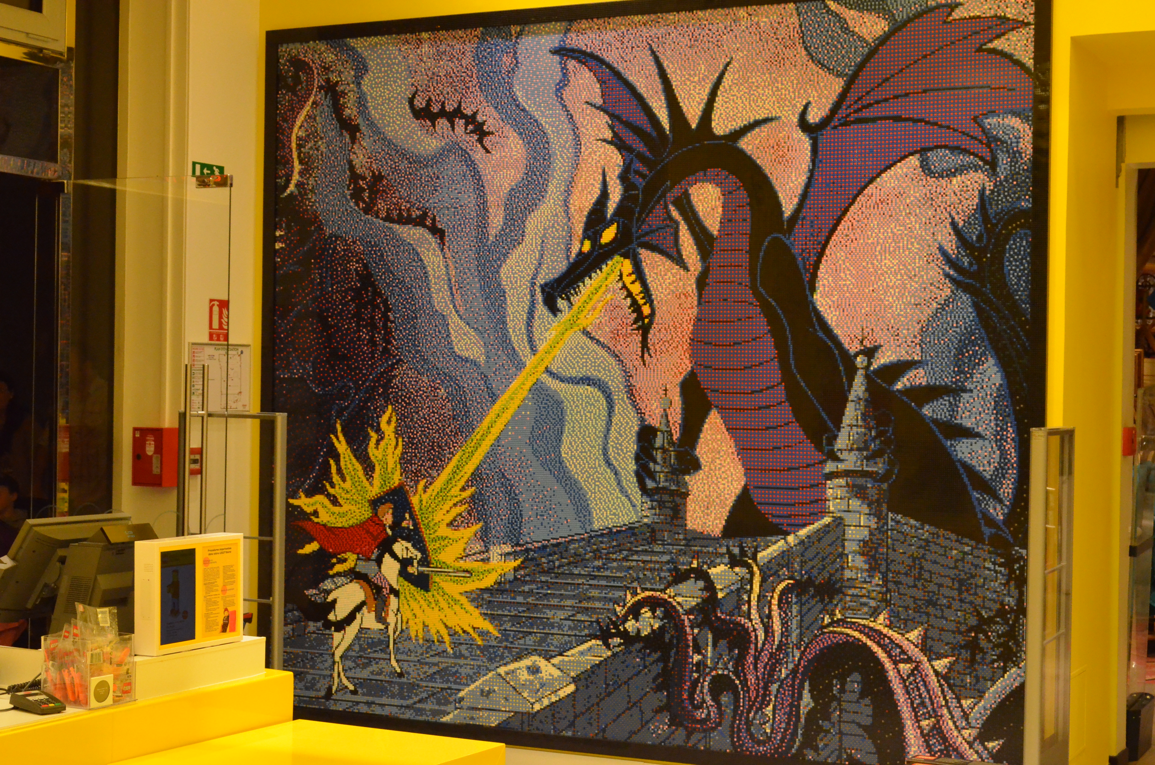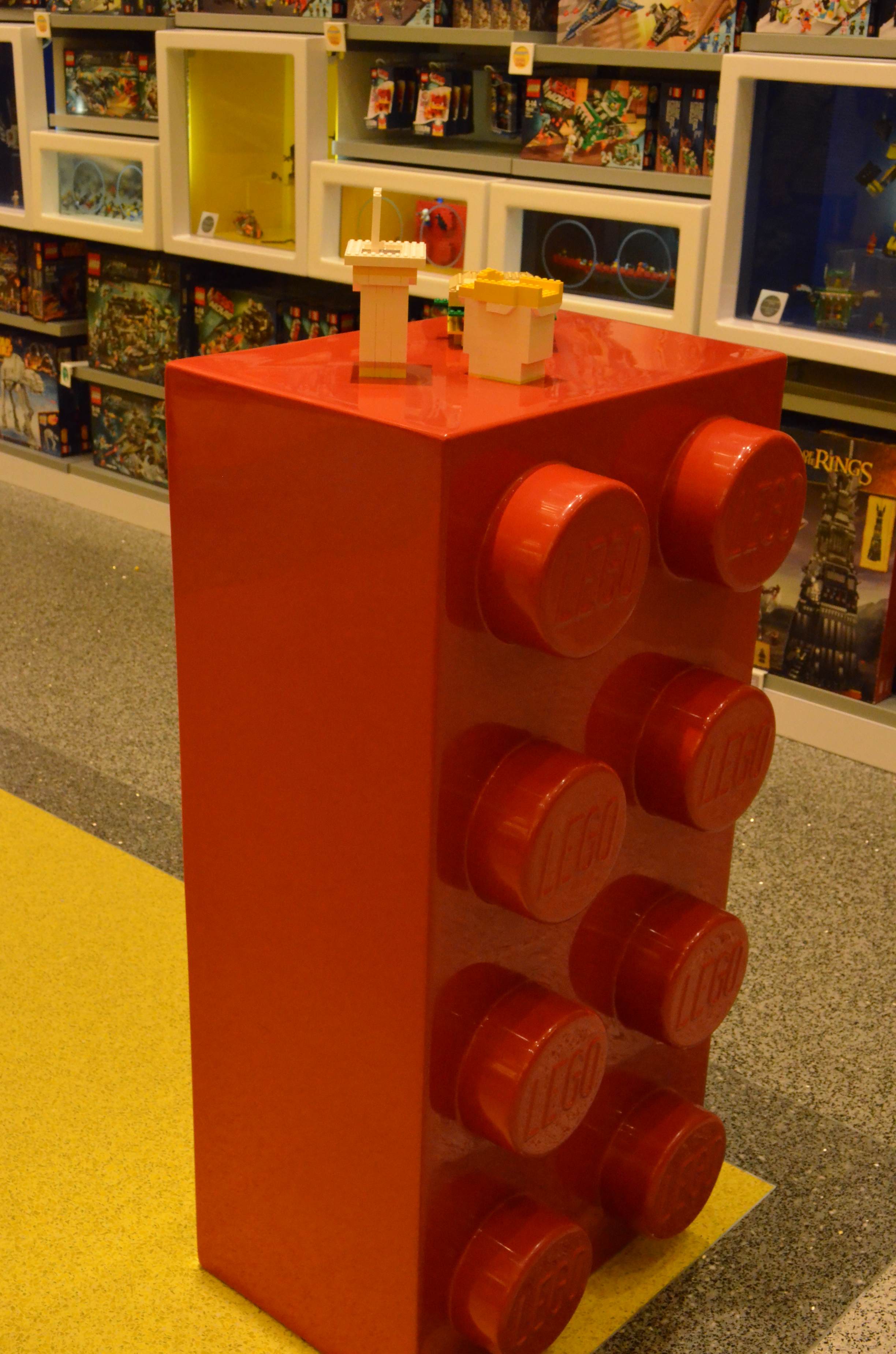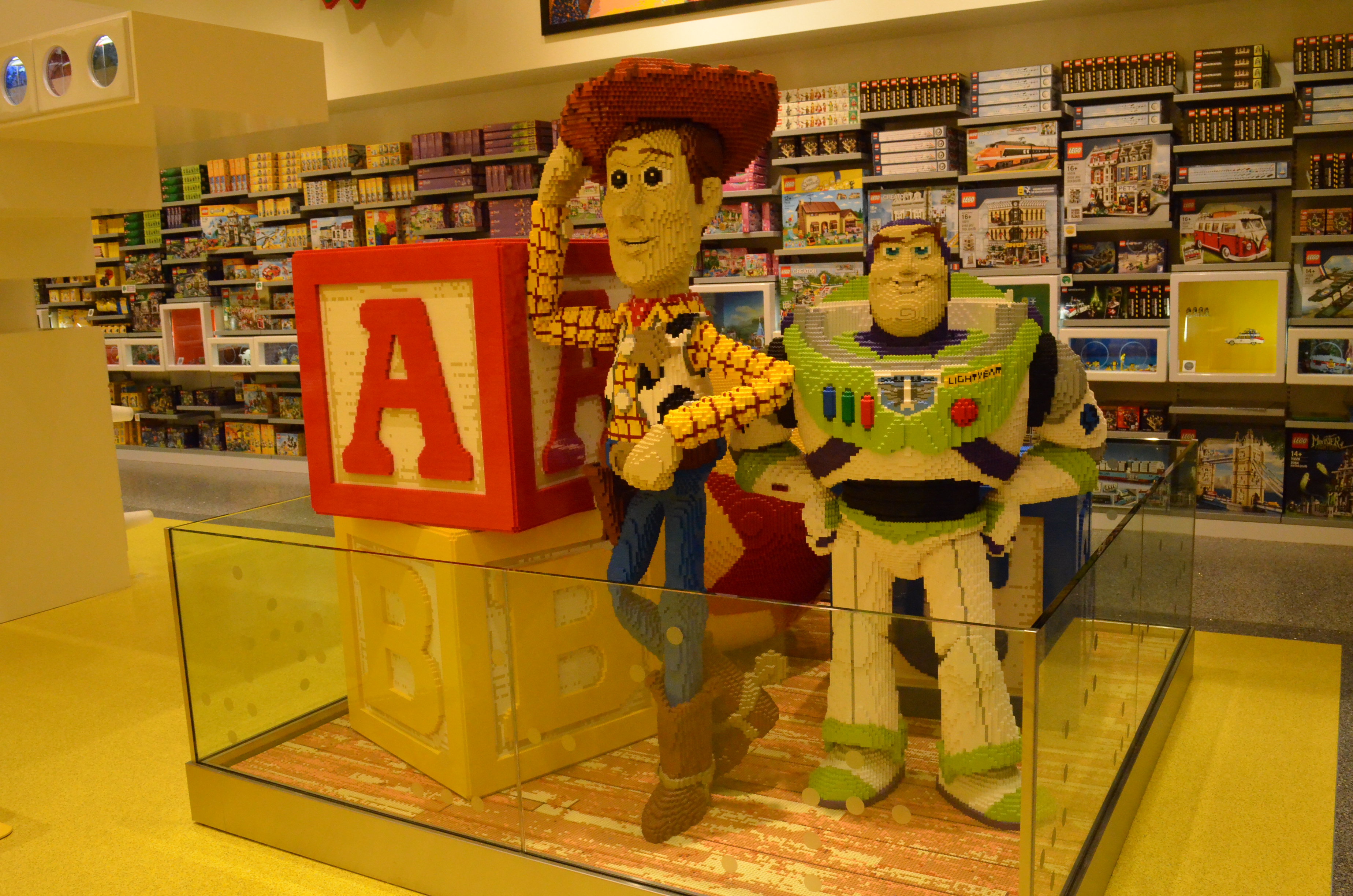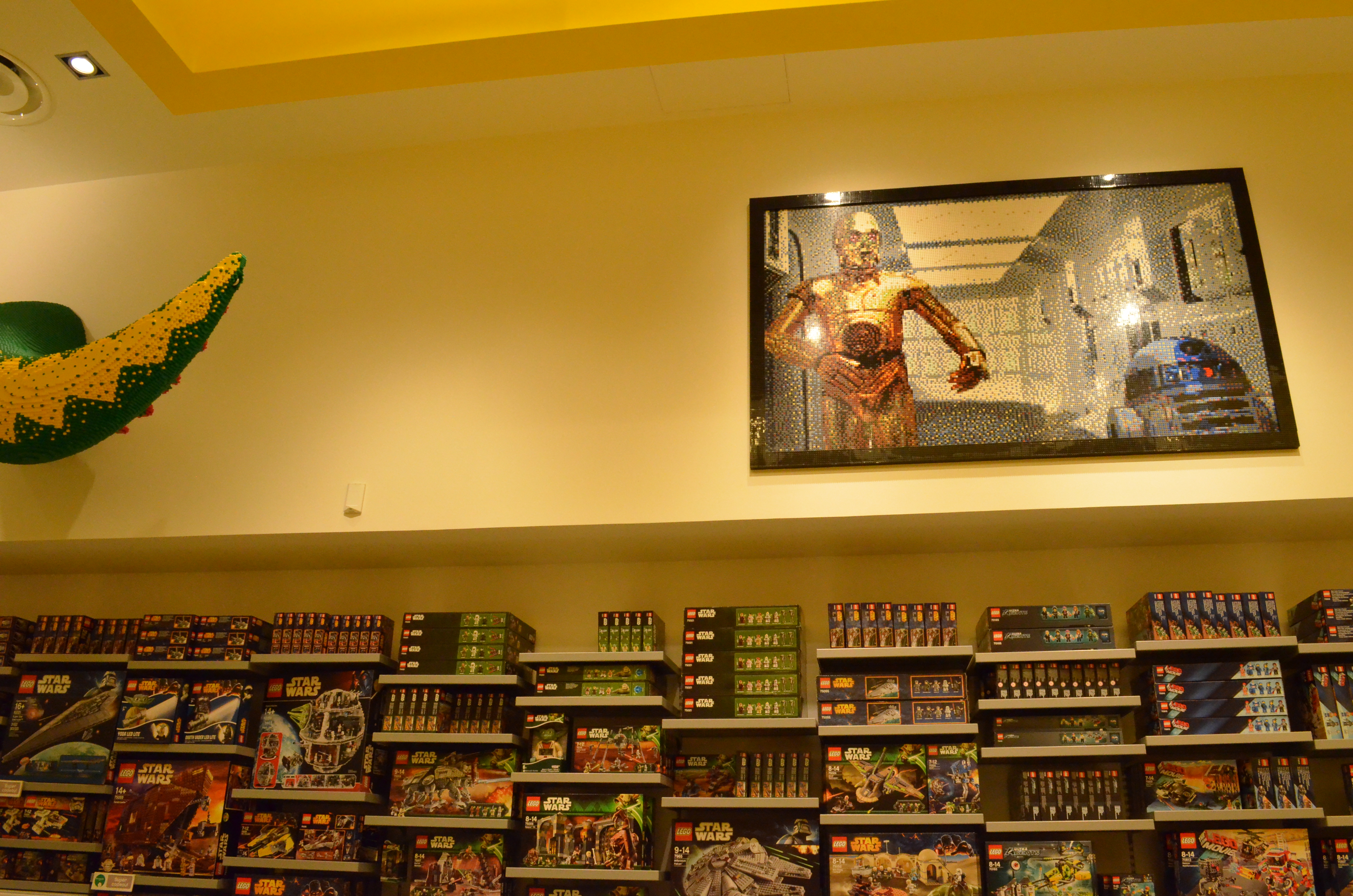 Quand on rentre on est cerné par des milliers de briques de couleurs dans tous les sens. De nombreux tableaux et personnages grandeurs natures aux couleurs de Disney ont été disposés dans le magasin histoire de bien mettre dans l’ambiance.