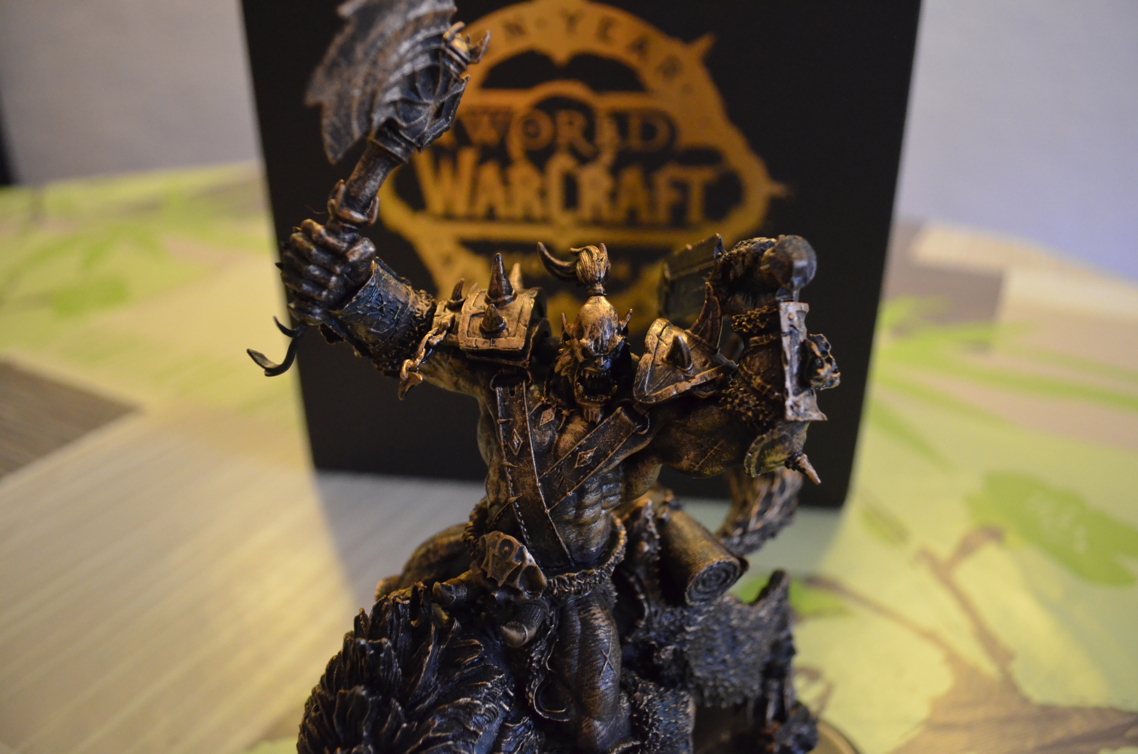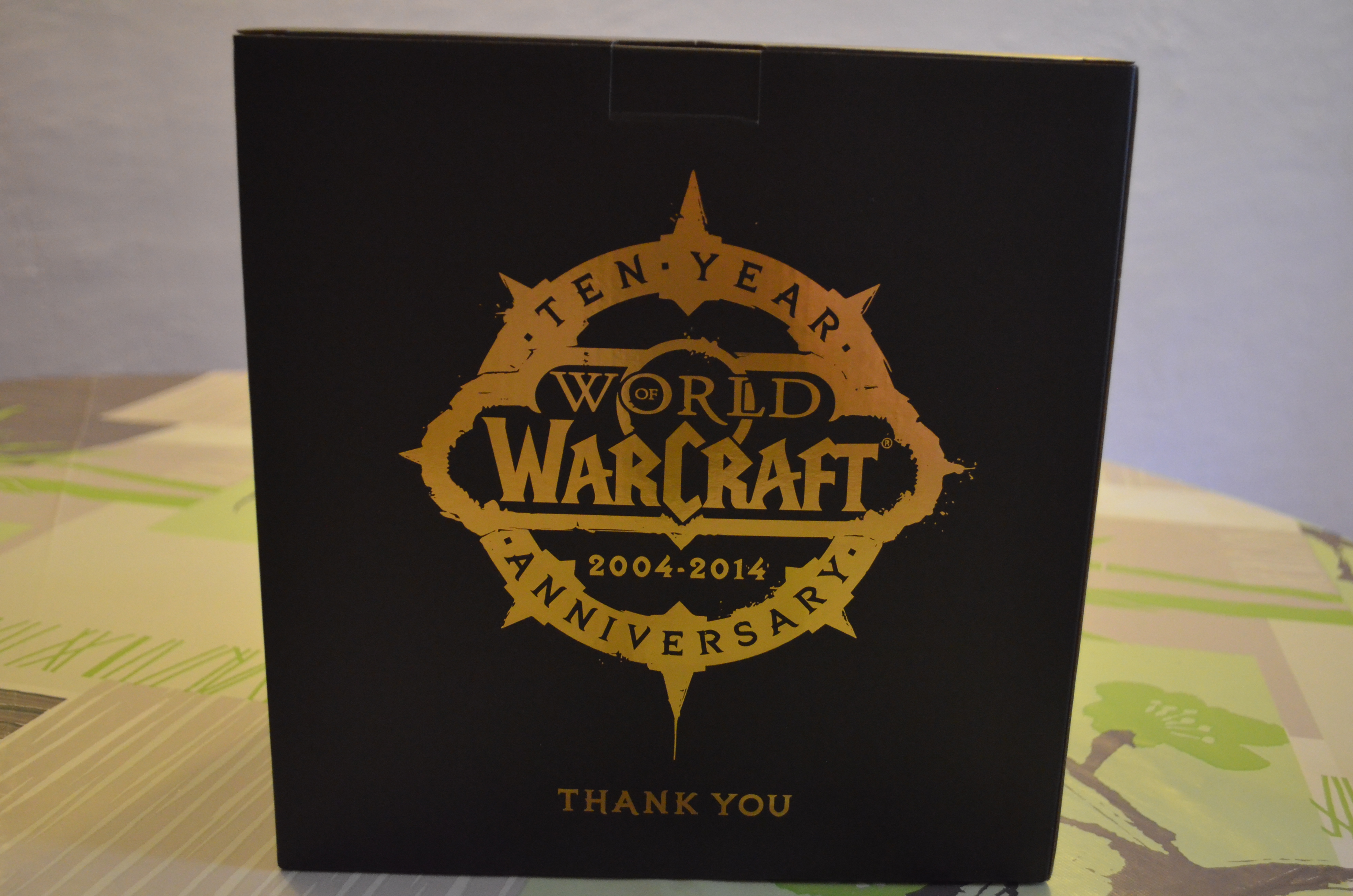 Pour recevoir la bête il fallait tout de même remplir certains critères assez draconien, comme avoir créée son compte WoW dans les 60 jours qui suivirent le lancement du jeu, et avoir été abonné 10 ans sans aucune interruption. Autant dire que peu de gens remplissent ces conditions. Les Américains reçurent leurs statuettes peu de temps après la date d’anniversaire, alors qu’elle ne pointera son nez que début mars pour nous autres européens. Trève de blabla. Je vous balance des photos et une vidéo de mon cru pour que vous puissiez bien apprécier cette petite pièce de collection !